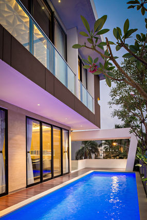 Modern contemporary design is translated in the personal spaces. Each room is designed differently with a lot of variations in the pattern application and also in the use of materials, to meet the house owner’s character. Different room experience is presented along the circulation corridor. The long void area integrates the relationship between the storeys giving a spacious feeling despite the dense space program.